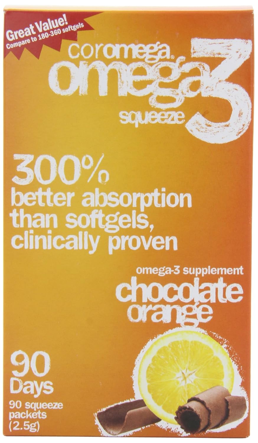 Daily dose squeeze packets. A delicious pudding-like alternative to capsules! Coromega provides superior bioavailability. In clinical study, the Omega-3 in Coromega was shown to enter the bloodstream faster at three times the levels of a fish oil product in softgel form. Each packet of Coromega delivers the daily intake levels of Omega-3 EPA and DHA recommended by experts for adults and children. As Pure As It Is Delicious: Coromega contains premium quality fish oil from deep, cold-water fish; molecular distillation assures product purity. To guarantee freshness and potency, our special packaging system protects the delicate Omega-3 EPA and DHA from oxygen and light a concern with Omega-3 products in bottle. Have you had your Coromega today? Guaranteed DHA & EPA Content. Pharmaceutical Grade. Heart, brain & eye health. Healthy Triglyceride levels. Joint health & mobility. Healthy nutrition for children over 4. 4 Great Ways to Enjoy Coromega: Squeeze directly into mouth! Squeeze onto spoon! Add to your favorite yogurt! Mix with your favorite blended drink! Colored with Beta Carotene. No sugar or artificial sweeteners. No dairy, yeast, starch, wheat or gluten. NSF Tested and Certified. EPAX Molecularly and Distilled for Purity. (These statements have not yet been evaluated by the Food and Drug Administration. This product is not intended to diagnose, treat, cure or prevent any disease.)